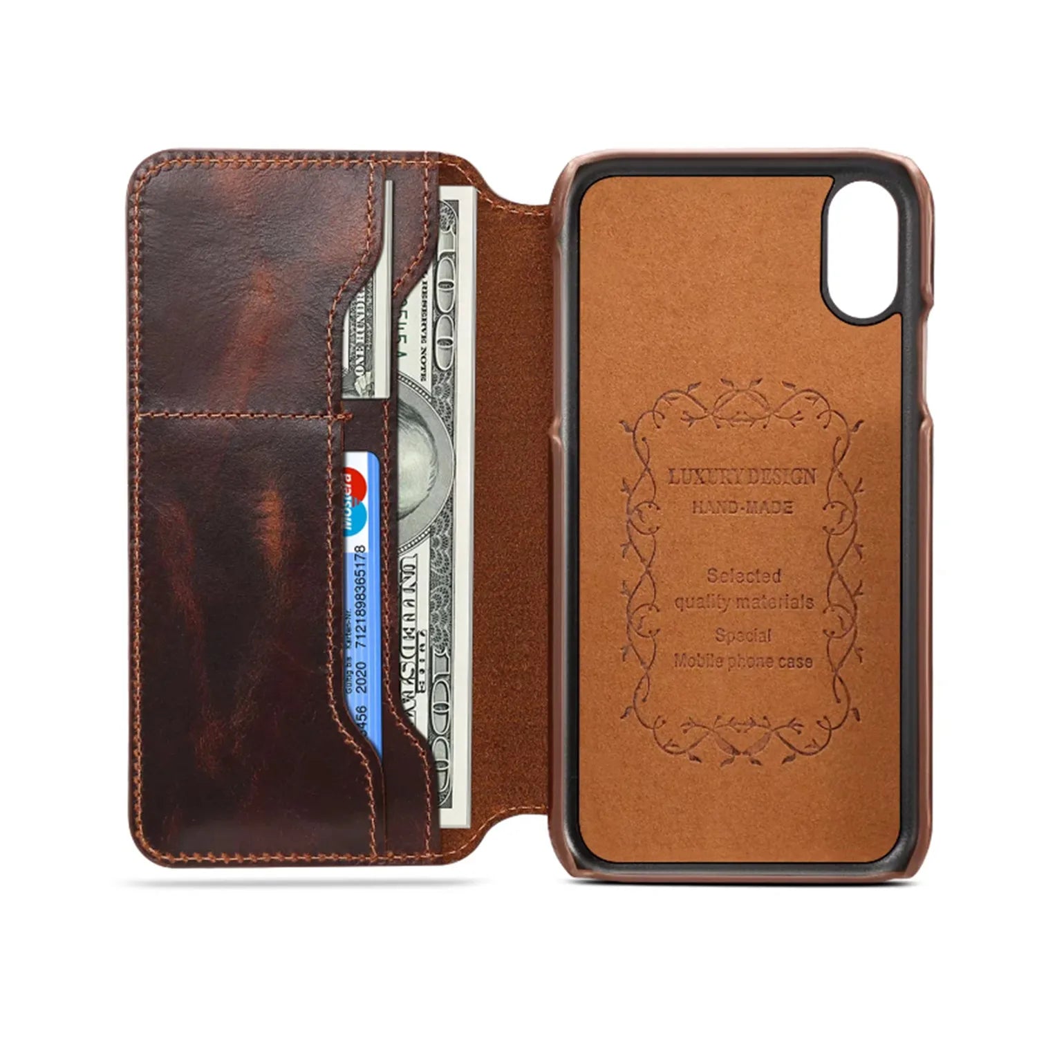 Luxury Cow Leather Case, Flip Wallet Card Holder, Vintage Style, Shockproof Resistant iPhone Case